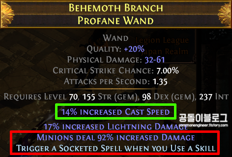 * Orb of Annulment는 사용하시면 안 됩니다. Minions Deals (90~95)% Increased Damage 옵션이 Atzoatl에서만 나오는데, 어눌 오브가 Atzoatl 옵션을 우선적으로 제거한다고 합니다. (출처 : https://pathofexile.gamepedia.com/Orb_of_Annulment)