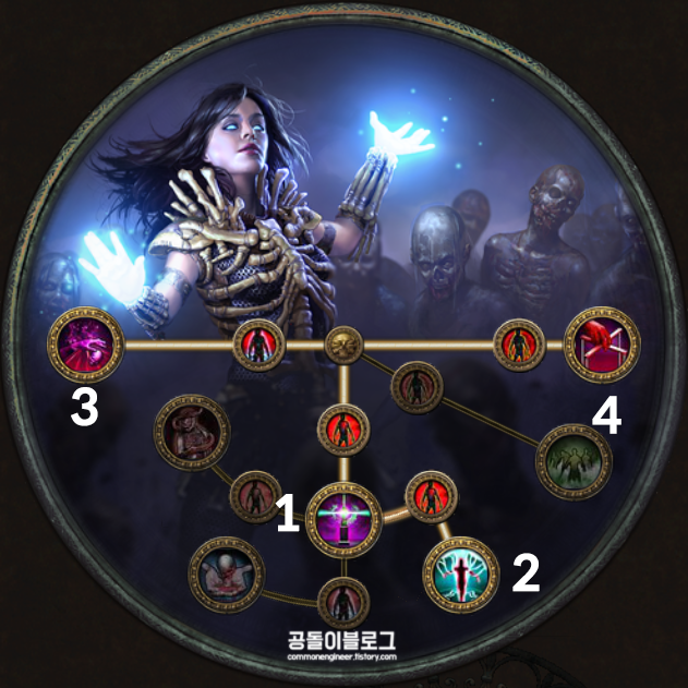 미니언 스펙을 올려주는 1, 2번을 따라 찍어줍니다. 특히 2번 노드에서 스펙터 최대 숫자 +1 옵션이 있습니다.