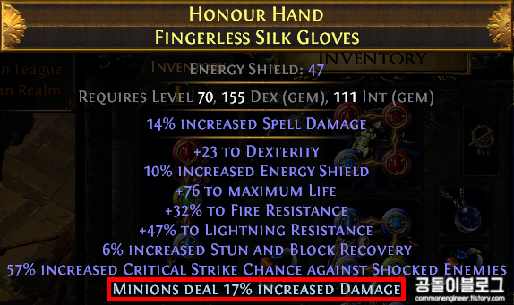 옵션 괜찮게 붙은 장갑에 미니언 데미지 옵션 붙여줍니다. 끝.