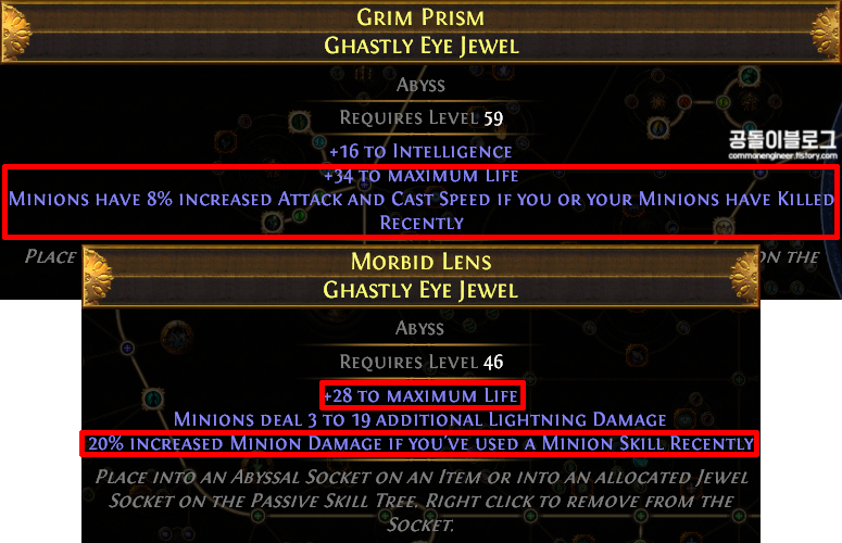 4는 미니언 이속과 함께, 미니언 스킬 사용시 미니언 데미지 증가, 미니언이 적 처치시 미니언 공속-캐속 증가 옵션이 있습니다. 어비스 쥬얼과 비슷하네요.